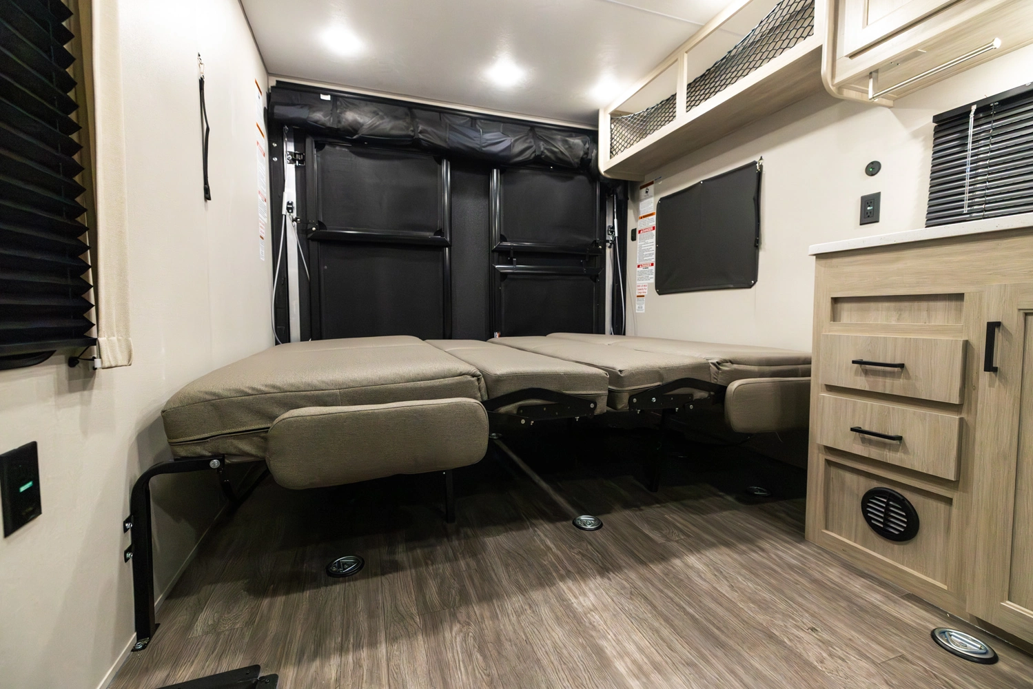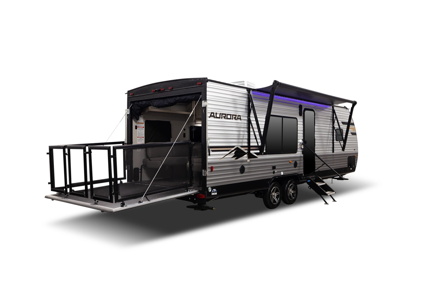 Aurora Toy Haulers are crafted for RV owners who want adventure built into every trip. Designed to carry quads, side-by-sides, dirt bikes, kayaks, and gear, these trailers use tough construction and flexible garage areas that make loading and unloading simple. Aurora Toy Haulers blend utility and comfort, giving travelers a dependable basecamp for riding trails, exploring remote terrain, and maximizing time outside. RV enthusiasts can enjoy the freedom to chase new destinations with the strength and trusted engineering that Forest River is known for. The result is a powerful tool for active families who want to embrace the outdoors without limits.