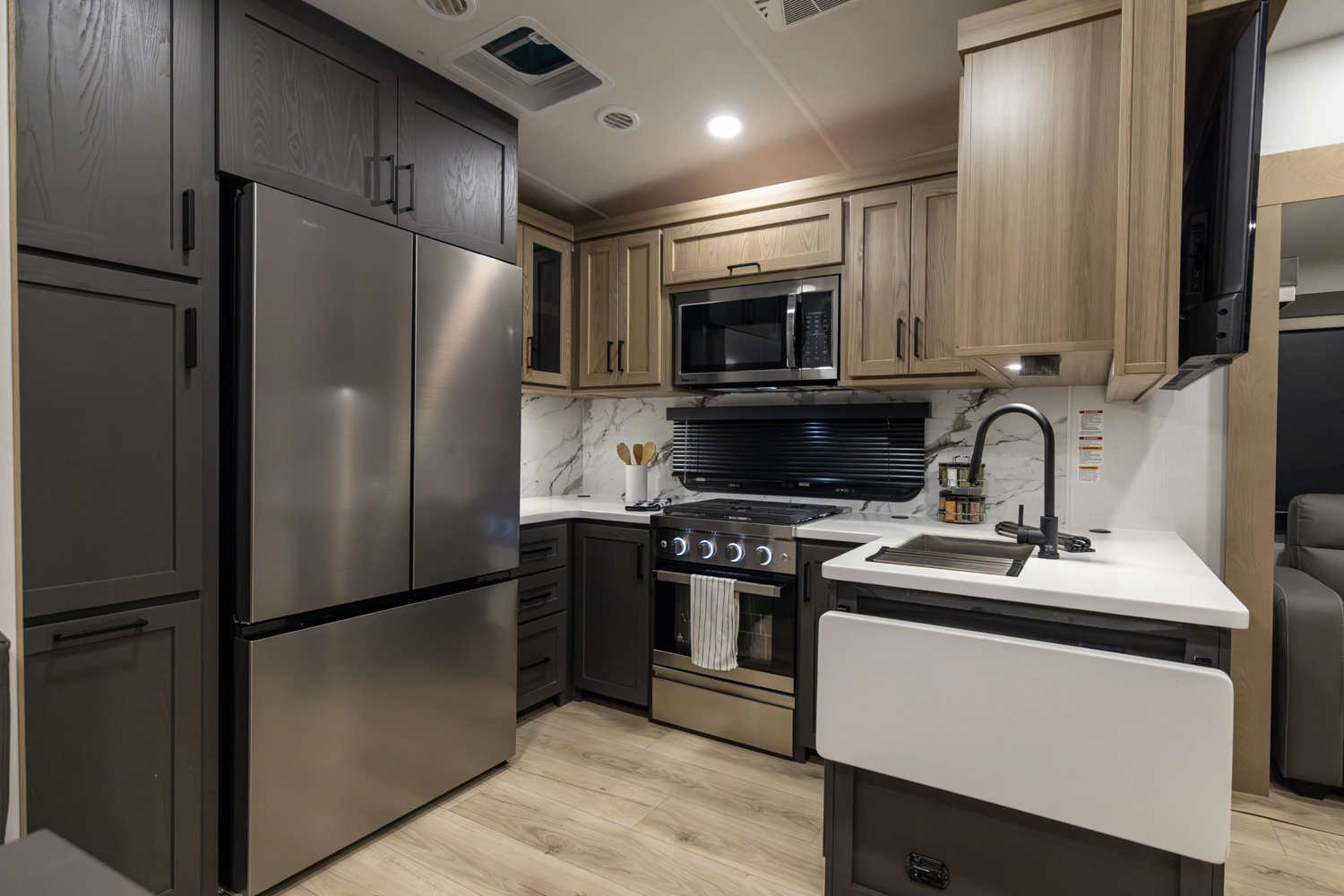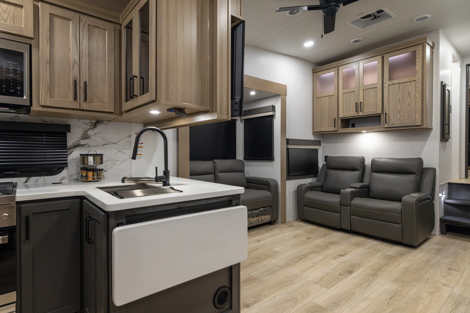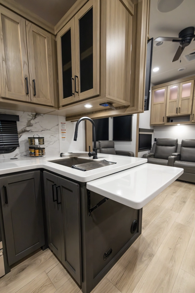 WHEN YOU WISH TO UPGRADE YOUR CAMPING EXPERIENCE, EMBRACE OUR CLASSIC LINE OF 5TH WHEELS. Elevate your journey with the quintessence of Flagstaff's first-in-class quality and exceptional craftsmanship, now augmented by a host of supplementary features to enrich your journey. Anticipate superior offerings such as king-sized beds, effortless electric auto-leveling, exquisite upgraded solid-surface countertops, and the luxury of residential-style soft-close drawers. Every Classic 5th wheel now comes with an option for our power package, propelling you to destinations you once deemed beyond reach.