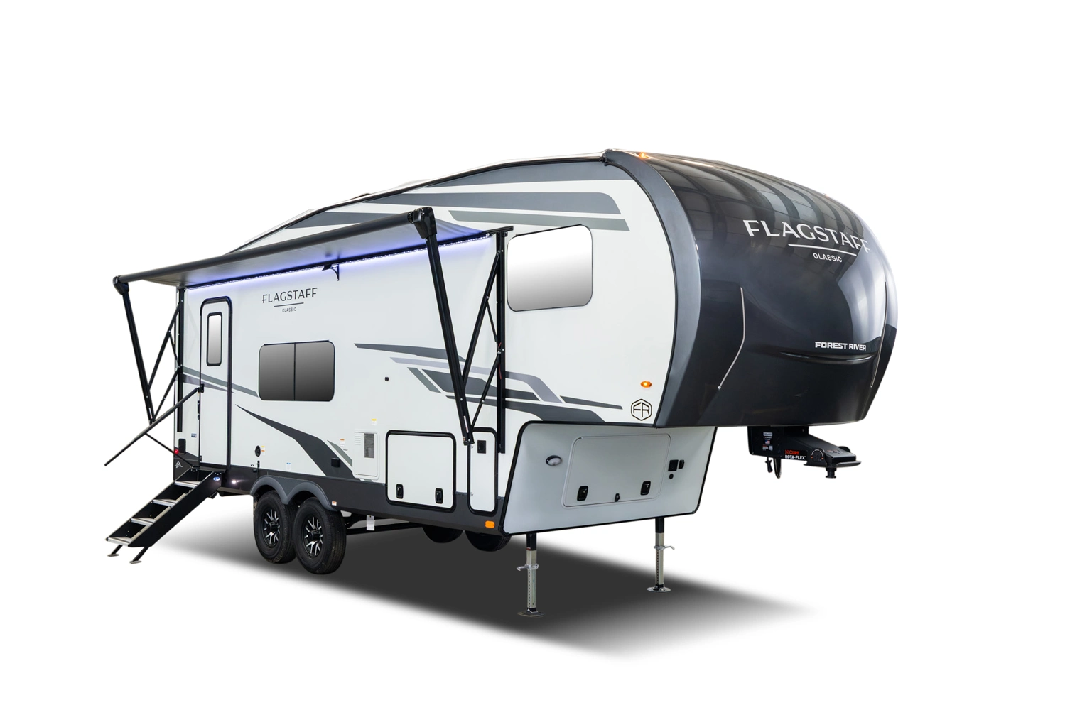 This under-30’ fifth wheel packs luxury into a compact design! Enjoy a spacious living area with a 67" theater seat, 44" dinette, and entertainment center with TV. The kitchen offers a pantry, fridge, and plenty of counter space, while the private front bedroom includes a queen bed (king optional) and wardrobe storage. With a roomy bathroom, pass-thru storage, and a 20' awning, it’s the perfect blend of comfort and easy towing.