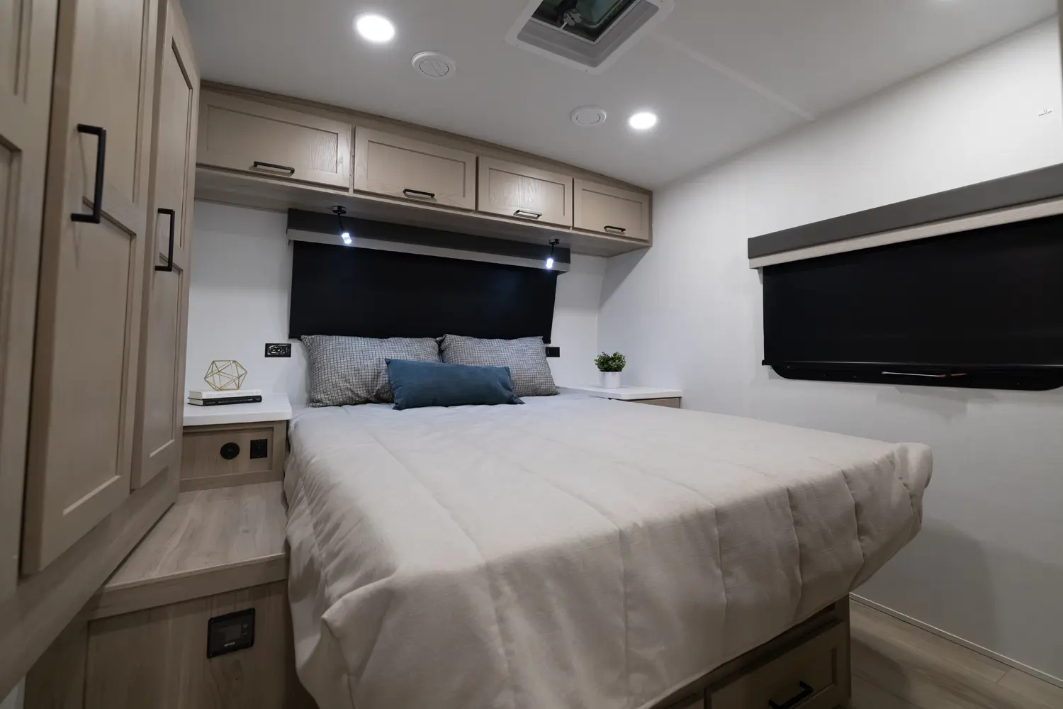 This unit is unique with its big 36" sliding doors leading to the bathroom and bedroom. These doors make moving around for a broad shouldered person easier and comfortable. The entertainement center is loaded with 32" tv, a residential soundbar and a fireplace space heater. Across from this lovely entertainment center is a 72" theatre seating which is perfect for reclining and watching a good movie.