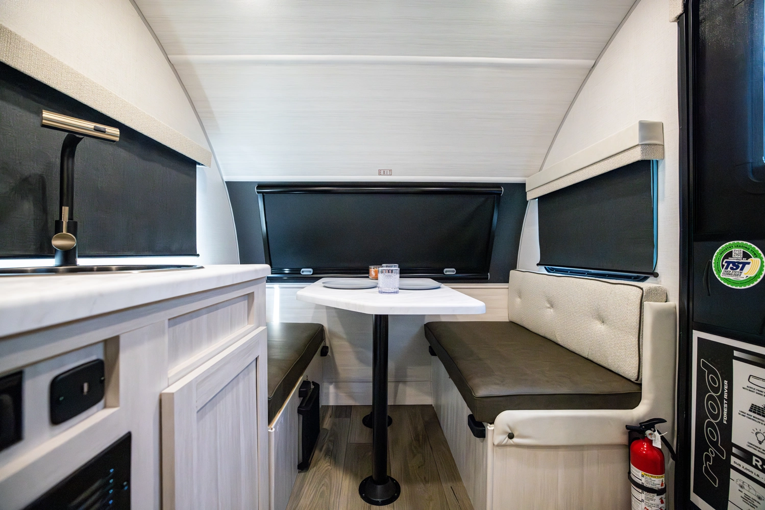 The RP-171 is an ultra-lite travel trailer offering serious features in compact form. With a well-appointed wet bath, efficient kitchen space, and a rear bedroom for restful nights, it delivers comfortable camping without excess bulk. Ample storage, modern finishes, and the thoughtful r•pod design make it ideal for couples or small families seeking lightweight, no-compromise adventures.