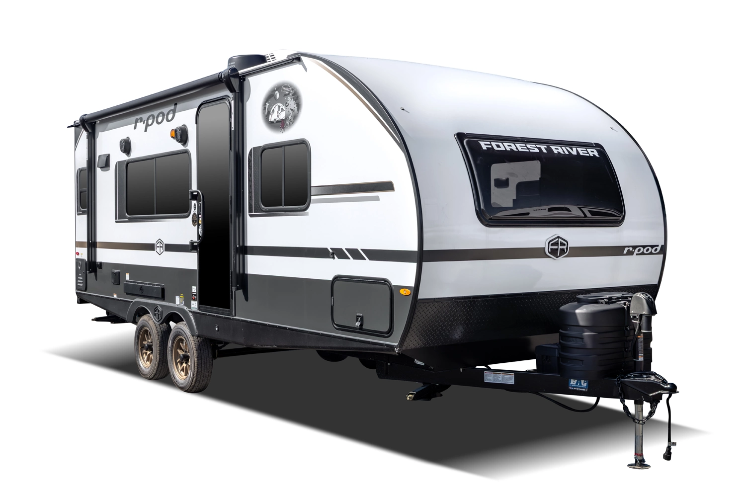 The RP-205 blends lightweight towing with a spacious layout. A private queen bedroom offers comfort and privacy, while the rear corner kitchen and booth dinette create a functional living space. The full bath adds convenience, and the theater seating enhances comfort. With modern finishes and smart storage, this no slide trailer is ideal for couples or small families seeking compact, full-featured adventures.