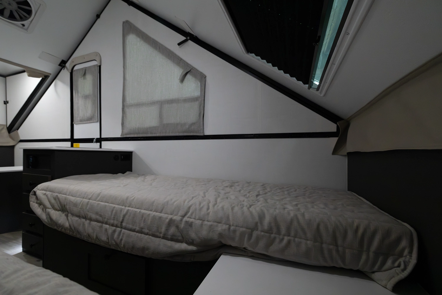 EMBRACING THE PINNACLE OF VERSATILITY. The Rockwood Hardside Series emerges as a harmonious feeling of a travel trailer's exterior and the effortless towing convenience of a tent camper. Within this remarkable synthesis, every model features both an air conditioner and a furnace, ensuring your inner sanctum remains cozy, regardless of external conditions. The extraordinary speed and simplicity of setup ensures that mere moments after arriving at your chosen campsite, you'll already be immersed in the joys of your camping experience.