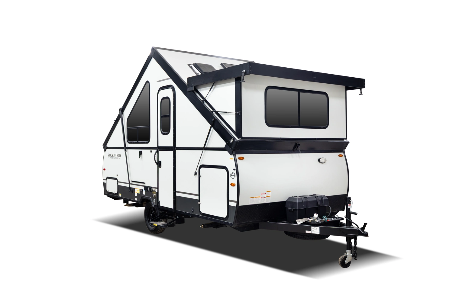 The Rockwood Hard Side A216HS combines compact convenience with smart design. Its front dormer increases headroom while housing a comfortable bunk bed, while the rear gaucho easily converts for relaxing or sleeping. Inside you’ll also find a convenient wet bath, a sink, and a small refrigerator—making this hard side camper a practical and comfortable choice for easy adventures.