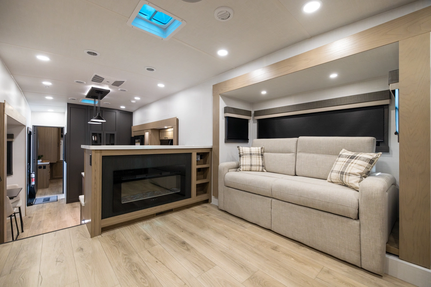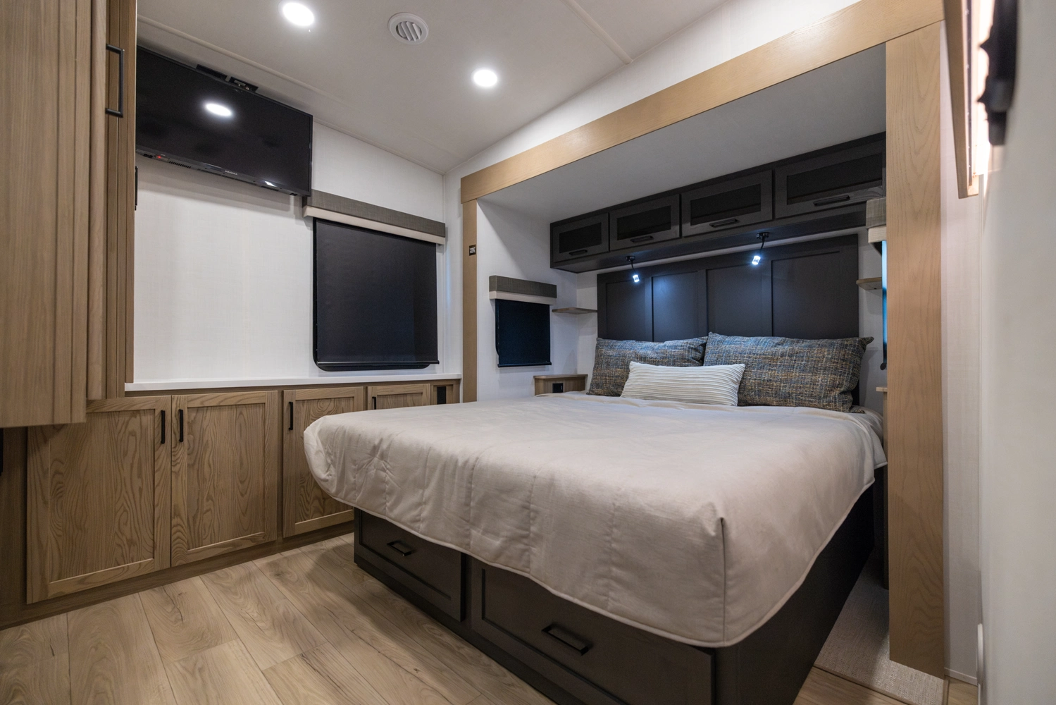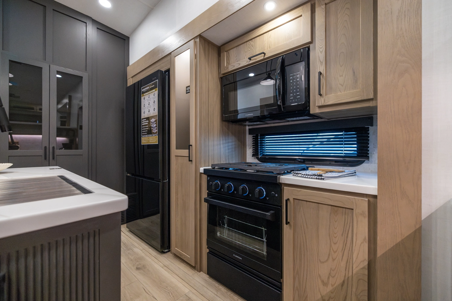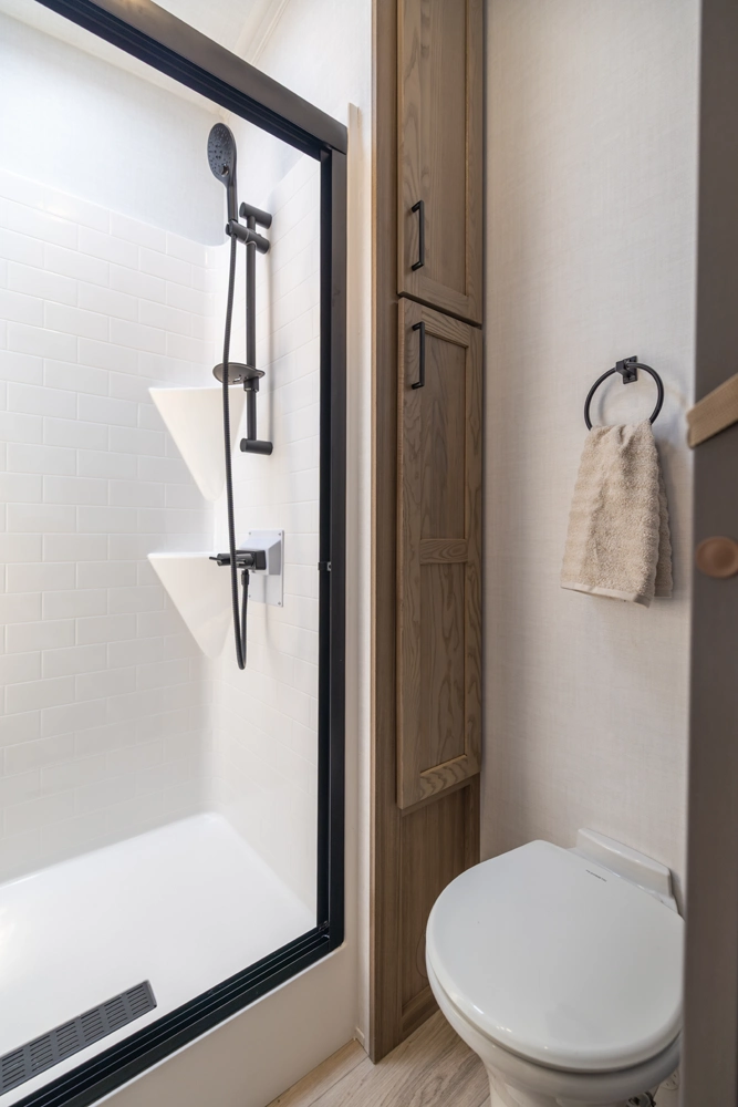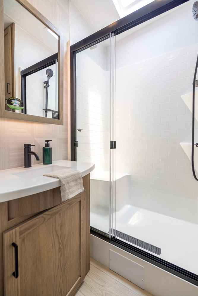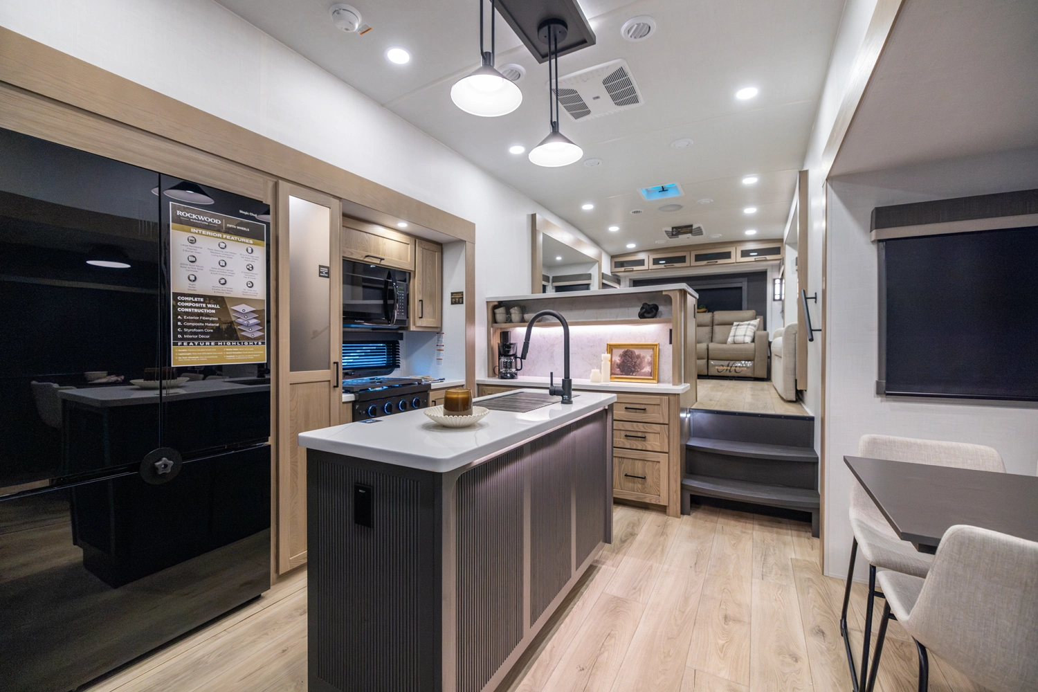 WHEN YOU WISH TO UPGRADE YOUR CAMPING EXPERIENCE, EMBRACE OUR SIGNATURE LINE OF 5TH WHEELS. Elevate your journey with the quintessence of Rockwood's first-in-class quality and exceptional craftsmanship, now augmented by a host of supplementary features to enrich your journey. Anticipate superior offerings such as king-sized beds, effortless electric auto-leveling, exquisite upgraded solid-surface countertops, and the luxury of residential-style soft-close drawers. Every Signature 5th wheel now comes with an option for our power package, propelling you to destinations you once deemed beyond reach.