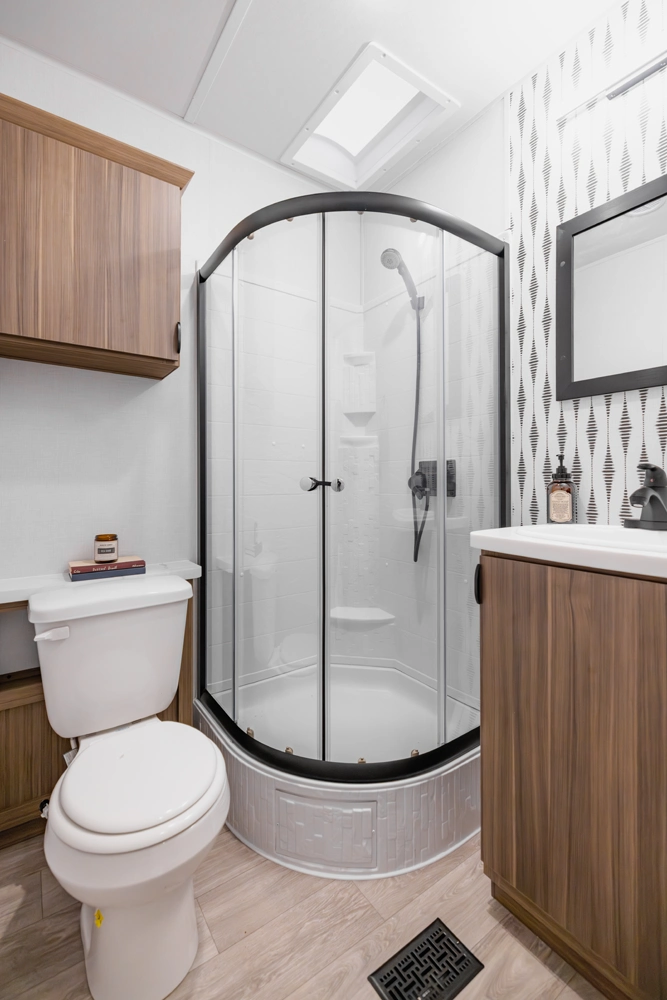 The 42QBQ is the ultimate bunkhouse, with four slides and an outdoor kitchen. The large front queen bedroom includes plenty of closet and cabinet space, while the adjacent bathroom gives you a walk-in radius shower. The living area features panoramic windows, fireplace (heater), and a tri-fold sofa. The bunk room provides 3 bunks plus the Versa-Queen giving the option of having another bunk, sofa, or queen bed. Do not forget the half bath with convenient door to the outside.