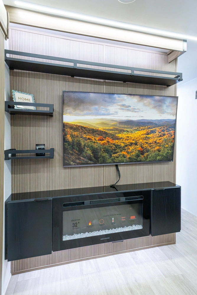 The 27RK stands out with its spacious kitchen and panoramic campsite windows. You will love the Versa-Lounge, which can reconfigure and customize according to your needs—and conveniently below is the Stow N Go Storage! This model also provides a fireplace (heater) and 11 CU. FT. refrigerator making you feel right at home.