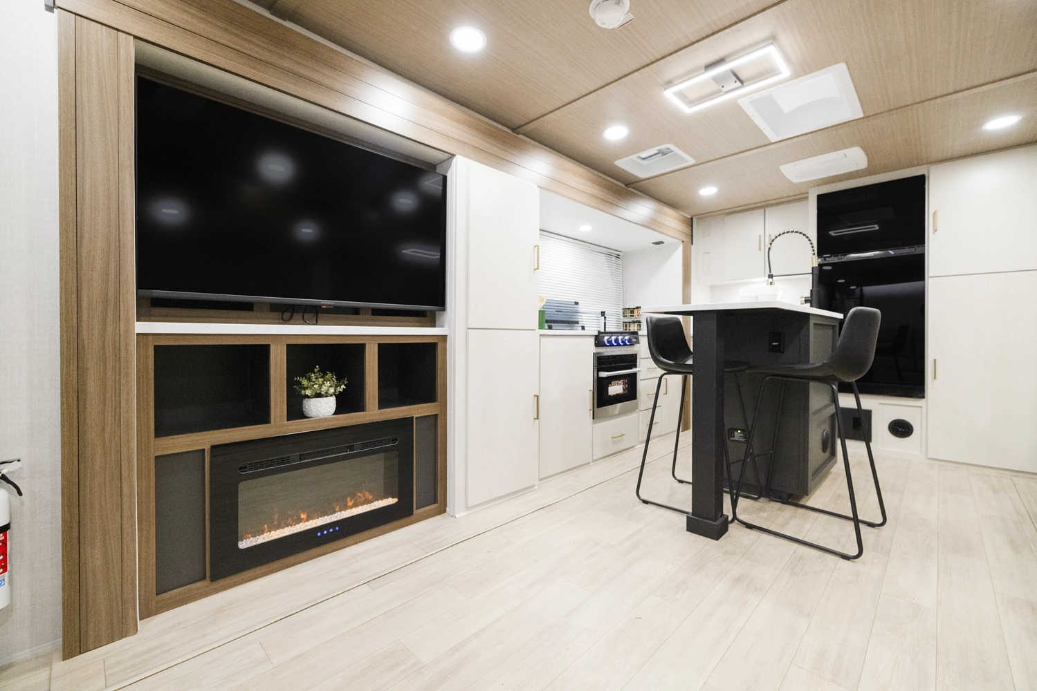 The 3400XL is a luxurious travel trailer perfect for couples or people looking for a large bedroom and plenty entertainment space. This coach features a wine fridge, extra electric fireplace, and a large reach-in closet in addition to your washer/dryer prep. This coach offers the most effective use of counter space and island space. Complete with a King Bed inside of your luxurious master bedroom suite. This travel trailer has everything you need for a fun-packed camping trip.