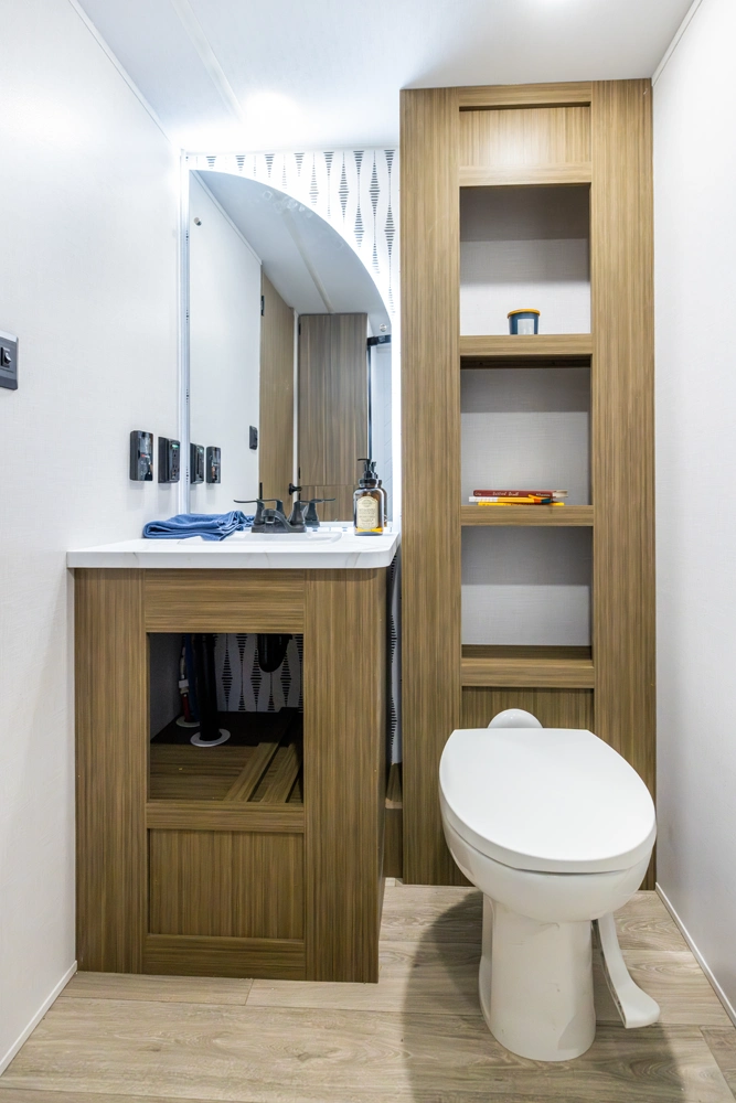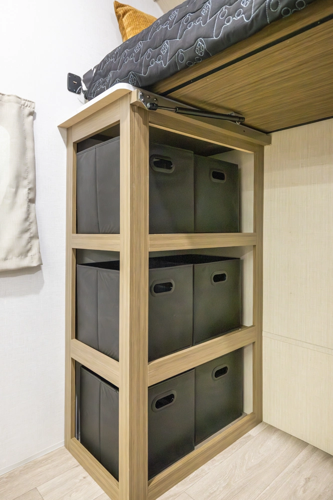 The 36VBDS is a unique, versatile bunkhouse that offers ample sleeping options so you can bring everyone camping! The front bedroom offers both the Versa-Queen and Versa-bunks, while the rear bedroom provides a queen bed, dresser, and closet. The living area features the fantastic Versa-Lounge with panoramic windows for great campsite views. Do not forget about the Stow N Go Storage conveniently below the Versa-Lounge.